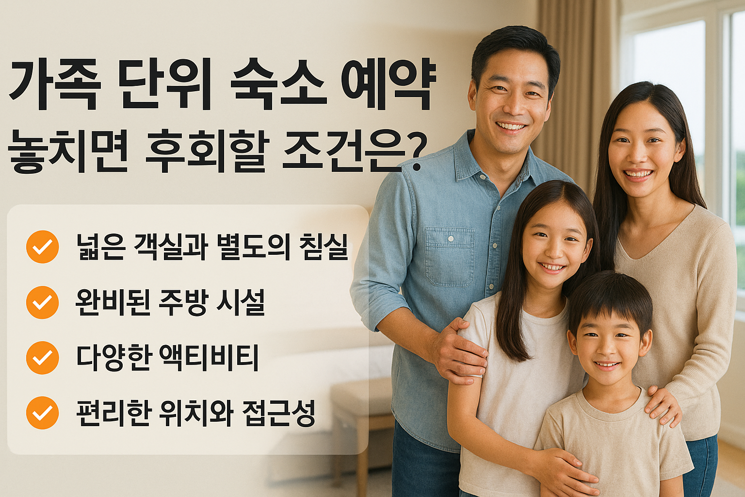 가족 여행 시 숙소를 고를 때 어떤 기준을 가장 중요하게 생각하시나요? 직접 다녀온 추천 숙소나 실패 경험도 좋습니다. 댓글로 공유해주시면 다른 분들에게 큰 도움이 됩니다!